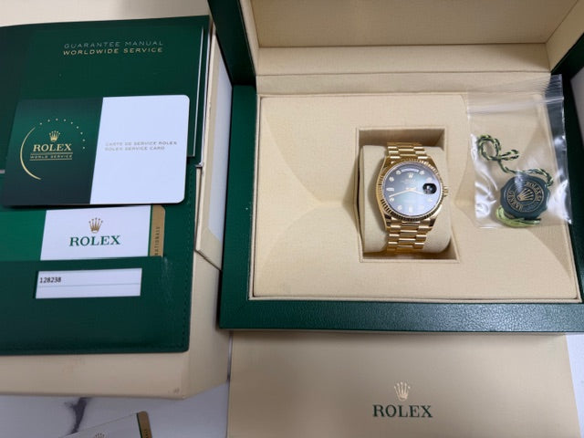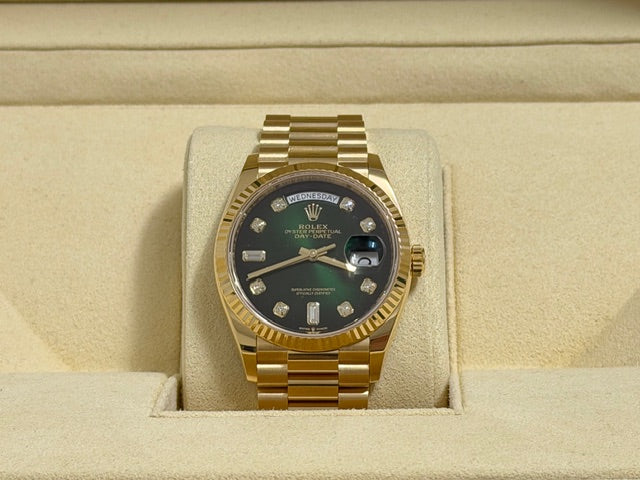 ロレックス 美品中古 デイデイト36 128238 グリーンオンブレダイヤ文字盤